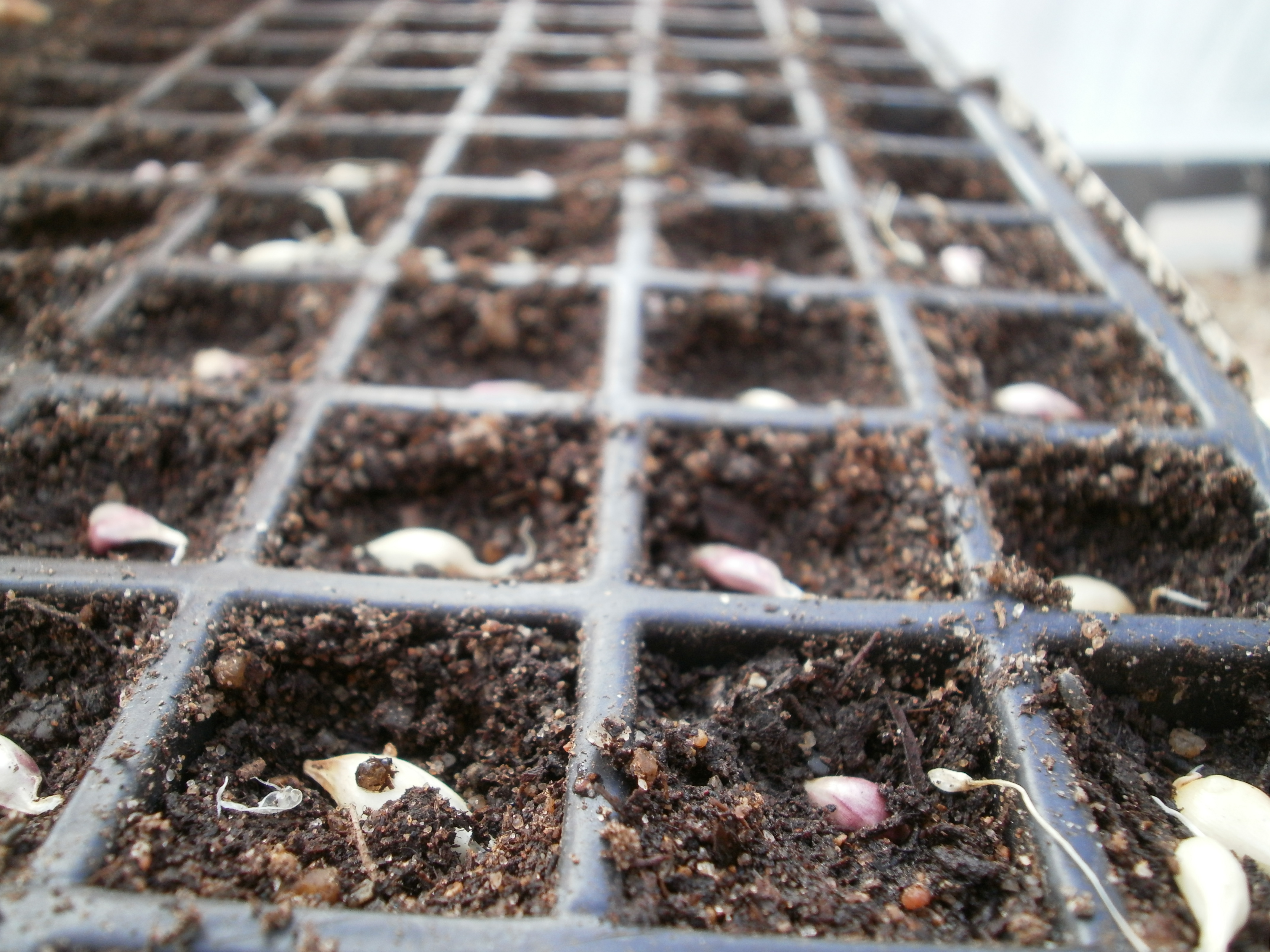 Normally, garlic is grown by taking a mature bulb, separating the differentiated cloves within the bulb, and planting each clove about 4 to 6 inches apart in a well prepared, fertile garden bed in the fall (usually October). Some bulbs only produce 4 to 6 cloves, so many of the garlic plants that are grown need to be saved and replanted to have enough for next year’s crop. Soil borne diseases can become a problem since planting stock generally comes from other plants that have been in contact with the soil.